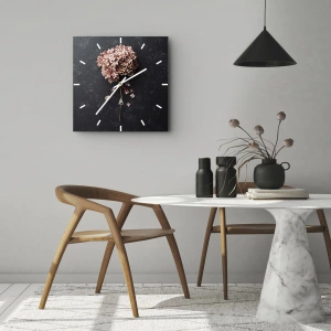 De klok is gemaakt van 4 mm dik gehard veiligheidsglas. De technologie van het maken van de klok voldoet aan de veiligheidsklasse 2B2 volgens de PN-EN 12600: 2004-norm, die weerstand tegen schokken garandeert. De klok op het glas is klaar om op te hangen - hij heeft een metalen hanger aan de achterkant van de klok en een schuimafstand die de even afstand tussen de klok en de muur regelt. De klok heeft een stil zwevend mechanisme dat wordt aangedreven door een batterij van 1,5 V - AA-batterij (batterij niet inbegrepen).