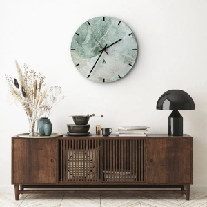 De klok is gemaakt van 4 mm dik gehard veiligheidsglas. De technologie van het maken van de klok voldoet aan de veiligheidsklasse 2B2 volgens de PN-EN 12600: 2004-norm, die weerstand tegen schokken garandeert. De klok op het glas is klaar om op te hangen - hij heeft een metalen hanger aan de achterkant van de klok en een schuimafstand die de even afstand tussen de klok en de muur regelt. De klok heeft een stil zwevend mechanisme dat wordt aangedreven door een batterij van 1,5 V - AA-batterij (batterij niet inbegrepen).