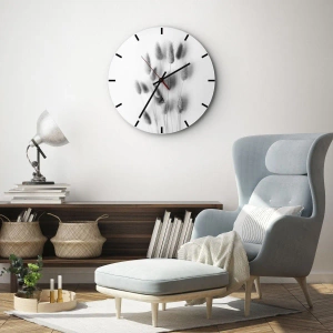 De klok is gemaakt van 4 mm dik gehard veiligheidsglas. De technologie van het maken van de klok voldoet aan de veiligheidsklasse 2B2 volgens de PN-EN 12600: 2004-norm, die weerstand tegen schokken garandeert. De klok op het glas is klaar om op te hangen - hij heeft een metalen hanger aan de achterkant van de klok en een schuimafstand die de even afstand tussen de klok en de muur regelt. De klok heeft een stil zwevend mechanisme dat wordt aangedreven door een batterij van 1,5 V - AA-batterij (batterij niet inbegrepen).