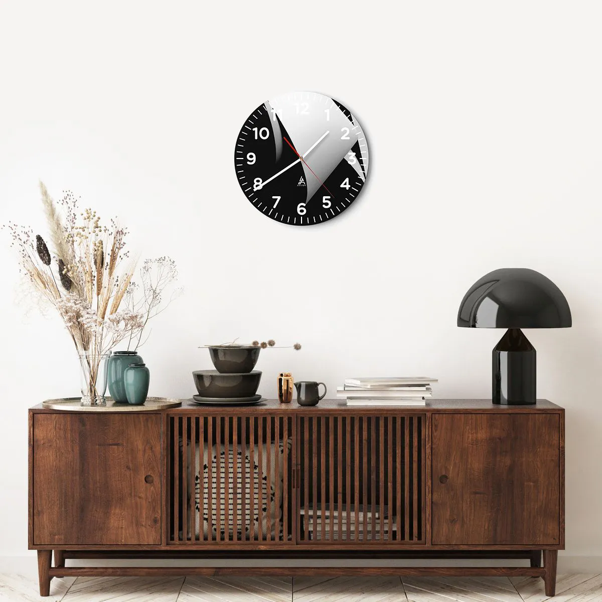 De klok is gemaakt van 4 mm dik gehard veiligheidsglas. De technologie van het maken van de klok voldoet aan de veiligheidsklasse 2B2 volgens de PN-EN 12600: 2004-norm, die weerstand tegen schokken garandeert. De klok op het glas is klaar om op te hangen - hij heeft een metalen hanger aan de achterkant van de klok en een schuimafstand die de even afstand tussen de klok en de muur regelt. De klok heeft een stil zwevend mechanisme dat wordt aangedreven door een batterij van 1,5 V - AA-batterij (batterij niet inbegrepen).