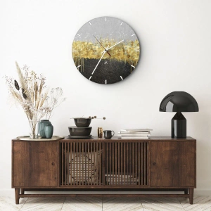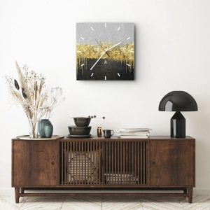 Wandklok - Klok - Gouden reflecties in een artistieke compositie tegen een zwart-grijze achtergrond - 30x30cm - Naar binnen en naar boven - Moderne wanddecoratie voor woonkamer, keuken en slaapkamer ARTTOR
