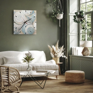 Wandklok - Klok - Artistieke spiralen in schelpstijl in tinten blauw en beige - 30x30cm - Wat zit er in de schelp? - Moderne wanddecoratie voor woonkamer, keuken en slaapkamer ARTTOR