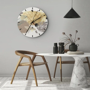 De klok is gemaakt van 4 mm dik gehard veiligheidsglas. De technologie van het maken van de klok voldoet aan de veiligheidsklasse 2B2 volgens de PN-EN 12600: 2004-norm, die weerstand tegen schokken garandeert. De klok op het glas is klaar om op te hangen - hij heeft een metalen hanger aan de achterkant van de klok en een schuimafstand die de even afstand tussen de klok en de muur regelt. De klok heeft een stil zwevend mechanisme dat wordt aangedreven door een batterij van 1,5 V - AA-batterij (batterij niet inbegrepen).