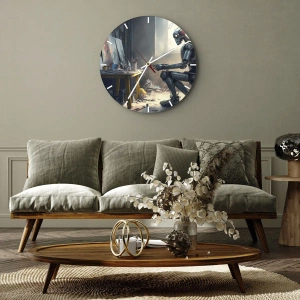 • Kunst, schilderen, robot, Fantasie, Voor de eetkamer, Voor de jeugdkamer, Voor de hal, Voor de woonkamer, Voor de slaapkamer, Grijs, Ronde