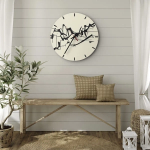 De wandklok "Misschien een Landschap" is een aanrader voor liefhebbers van vormen die openstaan voor interpretatie. De wijzerplaat is voorzien van abstracte lijnen die een dynamische maar subtiele compositie vormen tegen een crèmekleurige achtergrond. Deze vormen doen denken aan de contouren van een landschap, vandaar de naam, die een verondersteld landschap suggereert – de uiteindelijke interpretatie hangt echter af van de verbeelding van de kijker.