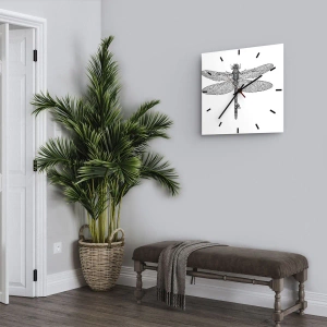 De klok is gemaakt van 4 mm dik gehard veiligheidsglas. De technologie van het maken van de klok voldoet aan de veiligheidsklasse 2B2 volgens de PN-EN 12600: 2004-norm, die weerstand tegen schokken garandeert. De klok op het glas is klaar om op te hangen - hij heeft een metalen hanger aan de achterkant van de klok en een schuimafstand die de even afstand tussen de klok en de muur regelt. De klok heeft een stil zwevend mechanisme dat wordt aangedreven door een batterij van 1,5 V - AA-batterij (batterij niet inbegrepen).