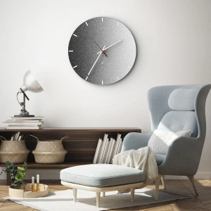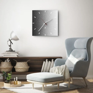 De klok is gemaakt van 4 mm dik gehard veiligheidsglas. De technologie van het maken van de klok voldoet aan de veiligheidsklasse 2B2 volgens de PN-EN 12600: 2004-norm, die weerstand tegen schokken garandeert. De klok op het glas is klaar om op te hangen - hij heeft een metalen hanger aan de achterkant van de klok en een schuimafstand die de even afstand tussen de klok en de muur regelt. De klok heeft een stil zwevend mechanisme dat wordt aangedreven door een batterij van 1,5 V - AA-batterij (batterij niet inbegrepen).