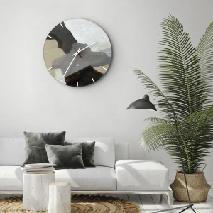 De klok is gemaakt van 4 mm dik gehard veiligheidsglas. De technologie van het maken van de klok voldoet aan de veiligheidsklasse 2B2 volgens de PN-EN 12600: 2004-norm, die weerstand tegen schokken garandeert. De klok op het glas is klaar om op te hangen - hij heeft een metalen hanger aan de achterkant van de klok en een schuimafstand die de even afstand tussen de klok en de muur regelt. De klok heeft een stil zwevend mechanisme dat wordt aangedreven door een batterij van 1,5 V - AA-batterij (batterij niet inbegrepen).