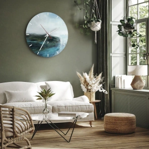 De klok is gemaakt van 4 mm dik gehard veiligheidsglas. De technologie van het maken van de klok voldoet aan de veiligheidsklasse 2B2 volgens de PN-EN 12600: 2004-norm, die weerstand tegen schokken garandeert. De klok op het glas is klaar om op te hangen - hij heeft een metalen hanger aan de achterkant van de klok en een schuimafstand die de even afstand tussen de klok en de muur regelt. De klok heeft een stil zwevend mechanisme dat wordt aangedreven door een batterij van 1,5 V - AA-batterij (batterij niet inbegrepen).