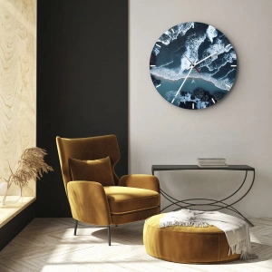 De klok is gemaakt van 4 mm dik gehard veiligheidsglas. De technologie van het maken van de klok voldoet aan de veiligheidsklasse 2B2 volgens de PN-EN 12600: 2004-norm, die weerstand tegen schokken garandeert. De klok op het glas is klaar om op te hangen - hij heeft een metalen hanger aan de achterkant van de klok en een schuimafstand die de even afstand tussen de klok en de muur regelt. De klok heeft een stil zwevend mechanisme dat wordt aangedreven door een batterij van 1,5 V - AA-batterij (batterij niet inbegrepen).