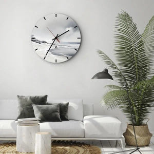 De klok is gemaakt van 4 mm dik gehard veiligheidsglas. De technologie van het maken van de klok voldoet aan de veiligheidsklasse 2B2 volgens de PN-EN 12600: 2004-norm, die weerstand tegen schokken garandeert. De klok op het glas is klaar om op te hangen - hij heeft een metalen hanger aan de achterkant van de klok en een schuimafstand die de even afstand tussen de klok en de muur regelt. De klok heeft een stil zwevend mechanisme dat wordt aangedreven door een batterij van 1,5 V - AA-batterij (batterij niet inbegrepen).