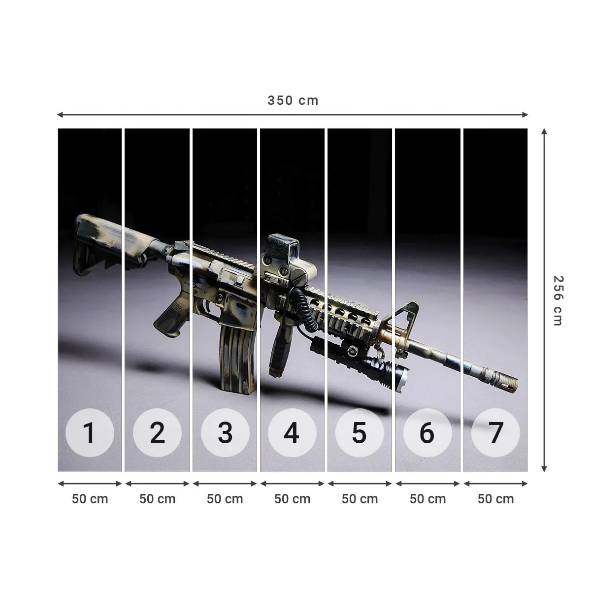 Fotobehang Premium Canvas - Altijd dreigend - Leger, Geweer, Wapen - 350x256 cm