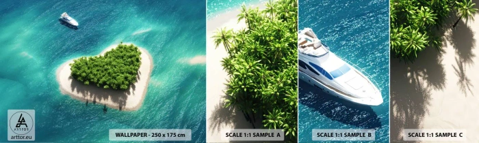 Fotobehang Staaltje Standard Eco - Ik hou van de zomer - Landschap, Eiland In De Oceaan, Jacht - 100x30 cm