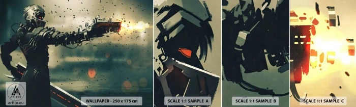 Fotobehang Staaltje Standard Eco - Dodelijke wapens - Je eigen Terminator - Abstractie, Fantasie, Toekomstige krijger - 100x30 cm