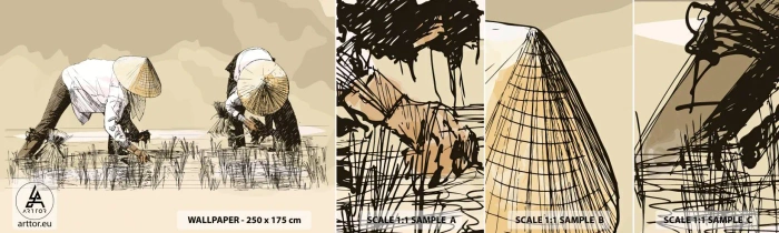 Fotobehang Staaltje Standard Eco - Succesvolle oogst - Azië, Rijstplantage, Rijstveld - 100x30 cm