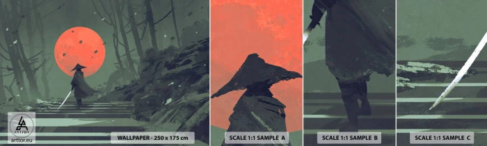 Fotobehang Staaltje Standard Eco - Rode maan krijger - Abstractie, Fantasie, Strijder - 100x30 cm