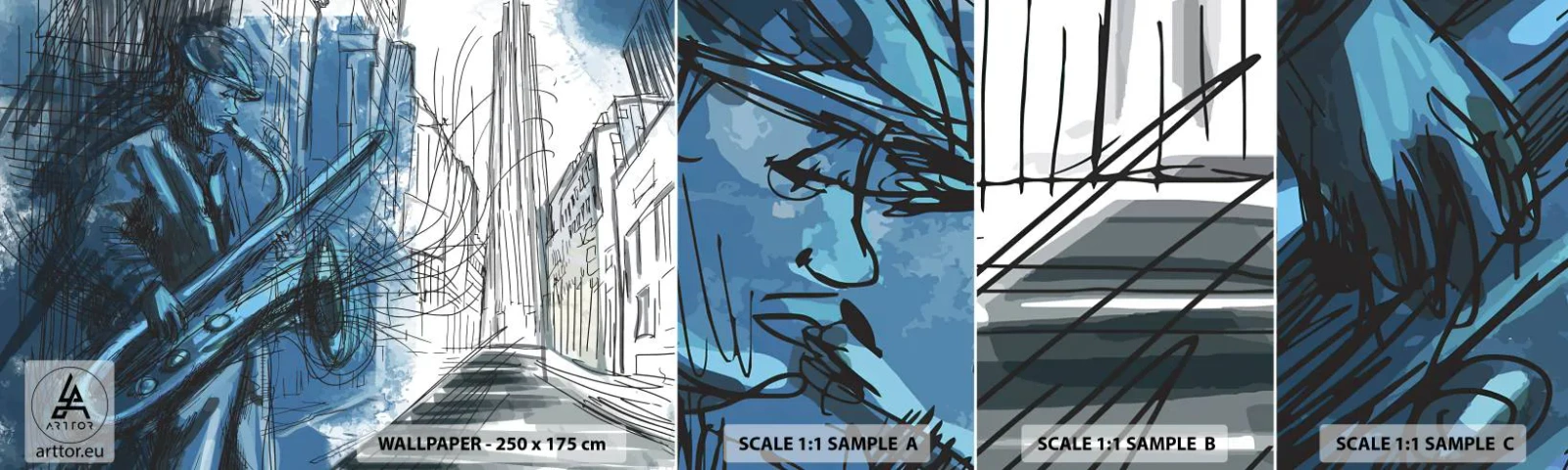 Fotobehang Staaltje Standard Eco - Stedelijke Rapsodie - Saxofoon, Jazz, Muziek - 100x30 cm
