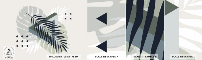 Fotobehang Staaltje Standard Eco - Natuur en geometrie - twee orden? - Monsterablad, Palmblad, Grafisch - 100x30 cm