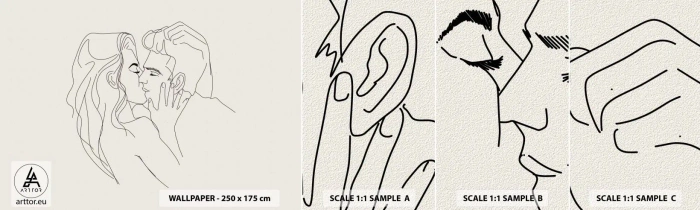 Fotobehang Staaltje Standard Eco - Verstrikt in gevoel - Grafisch, Verliefd stel, Kus - 100x30 cm