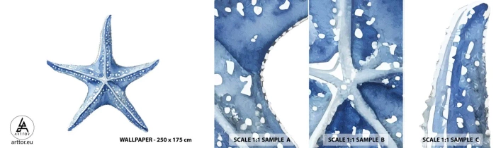 • zeester, kust, koraalrif, Nautisch, pastel, dieren, Voor op kantoor, Voor de studeerkamer, Voor de eetkamer, Voor de badkamer, Voor de kinderkamer, Voor de hal, Voor de woonkamer, Voor de slaapkamer, Wit Blauw