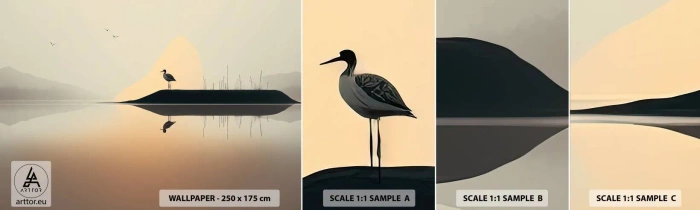 Fotobehang Staaltje Standard Eco - Heer op het meer - Vogel, Landschap, Minimalisme - 100x30 cm