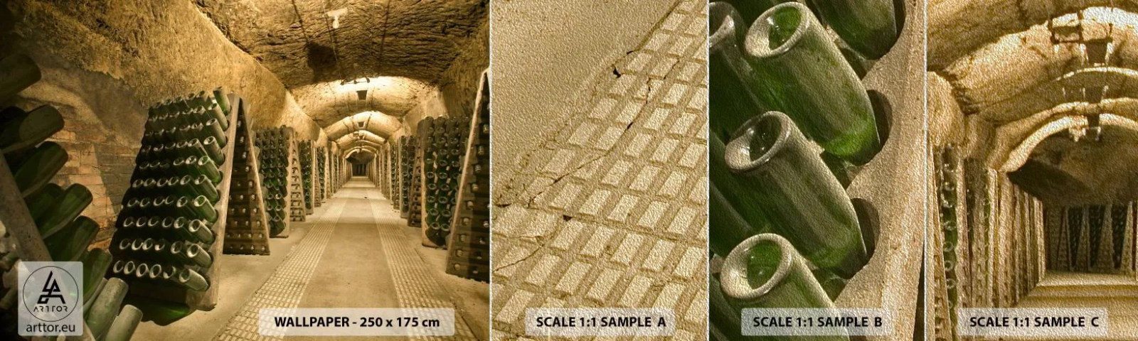 Fotobehang Monster Premium Sand - De geboorte van smaak - Gastronomie, Een fles wijn, Wijnkelder - 100x30 cm