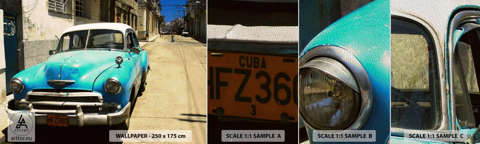 Fotobehang Monster Premium Sand - Evviva Cuba! - Automobiel, Auto, Cuba - 100x30 cm