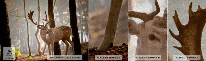 Fotobehang Monster Premium Sand - Het licht van de jeugd - Dieren, Hert, Woud - 100x30 cm
