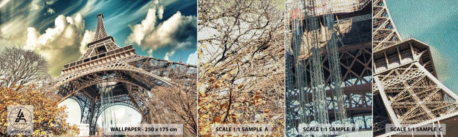 Fotobehang Monster Premium Sand - En in de herfst in Parijs... - Stad, Parijs, Eiffeltoren - 100x30 cm