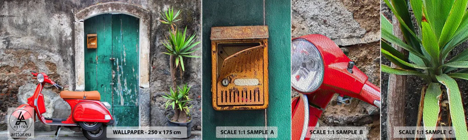 Fotobehang Monster Premium Sand - Italiaanse vakantie - Automobiel, Scooter, Italië - 100x30 cm