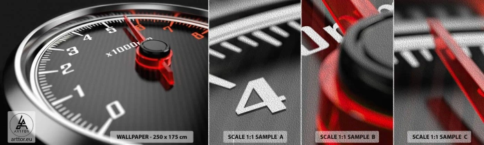 Fotobehang Monster Premium Sand - Geef vol gas - Automobiel, Snelheidsmeter, 3D - 100x30 cm