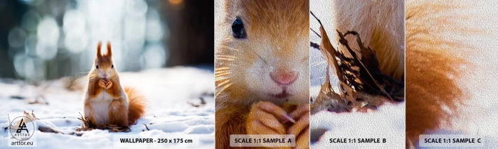 Fotobehang Monster Premium Sand - Waar kijk je naar? - Dieren, Eekhoorn, Winter - 100x30 cm