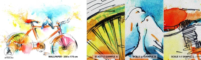 Fotobehang Monster Premium Sand - Fietsen voor twee - Abstractie, Fiets, Vogels - 100x30 cm