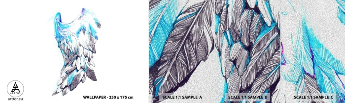 Fotobehang Monster Premium Sand - Ik heb vleugels nodig - Abstractie, Vogel vleugel, Vogelveren - 100x30 cm