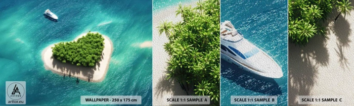Fotobehang Monster Premium Sand - Ik hou van de zomer - Landschap, Eiland In De Oceaan, Jacht - 100x30 cm