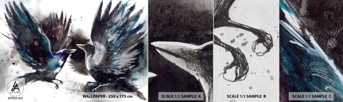 Fotobehang Monster Premium Sand - De ene kraai pikt de andere de ogen niet uit - Abstractie, Vogel, Dieren - 100x30 cm