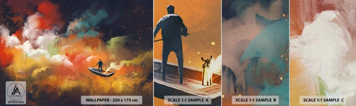 Fotobehang Monster Premium Sand - Met de boot door de sterrenstelsel - Abstractie, Fantasie, Reis - 100x30 cm