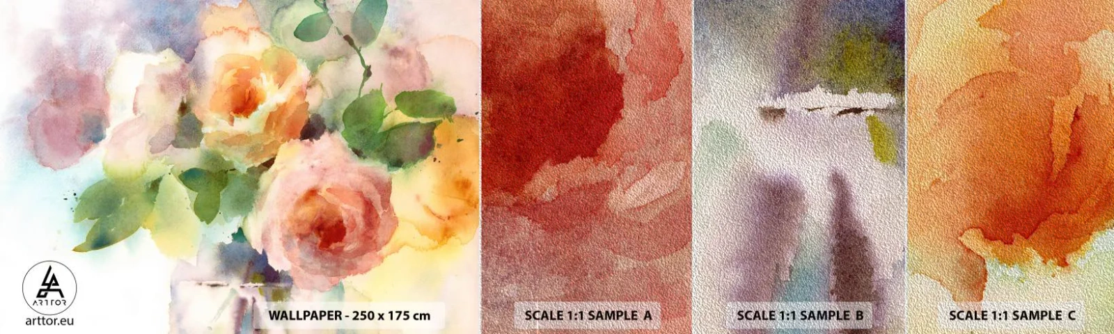 Fotobehang Monster Premium Sand - Delicaat als aquarel - Bloemen, Rozen, Boeket - 100x30 cm