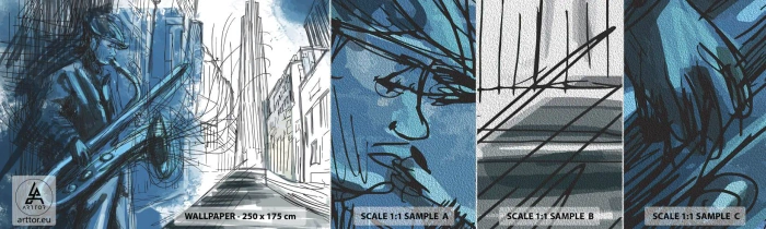 Fotobehang Monster Premium Sand - Stedelijke Rapsodie - Saxofoon, Jazz, Muziek - 100x30 cm