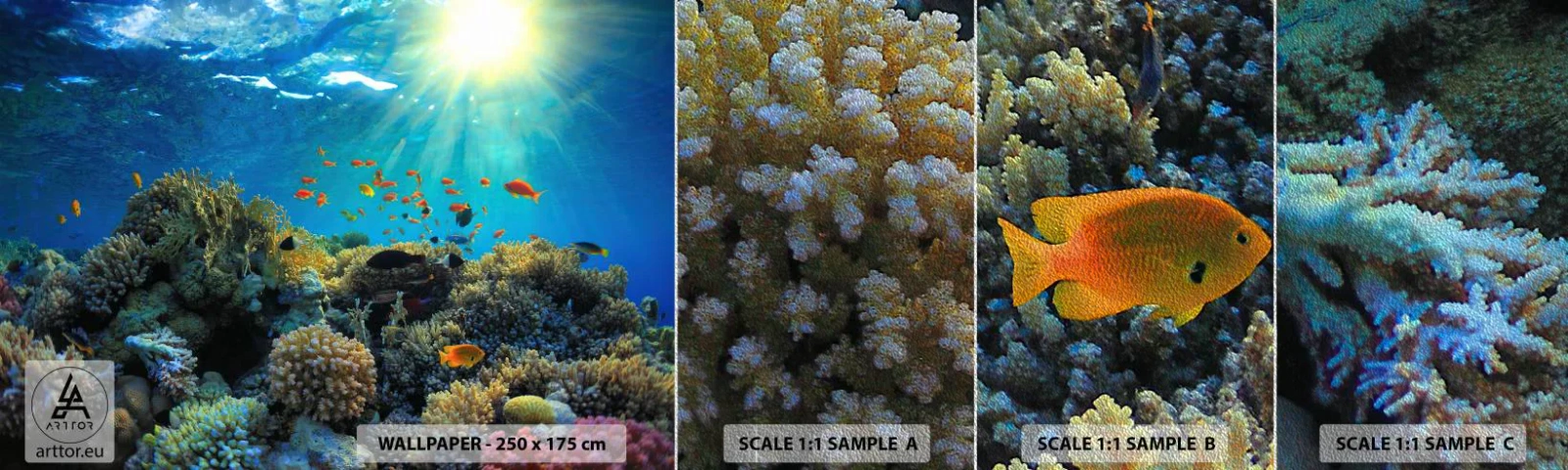 Fotobehang Monster Premium Sand - Onderwater schatten - koraalrif, Oceaan, Maritiem - 100x30 cm