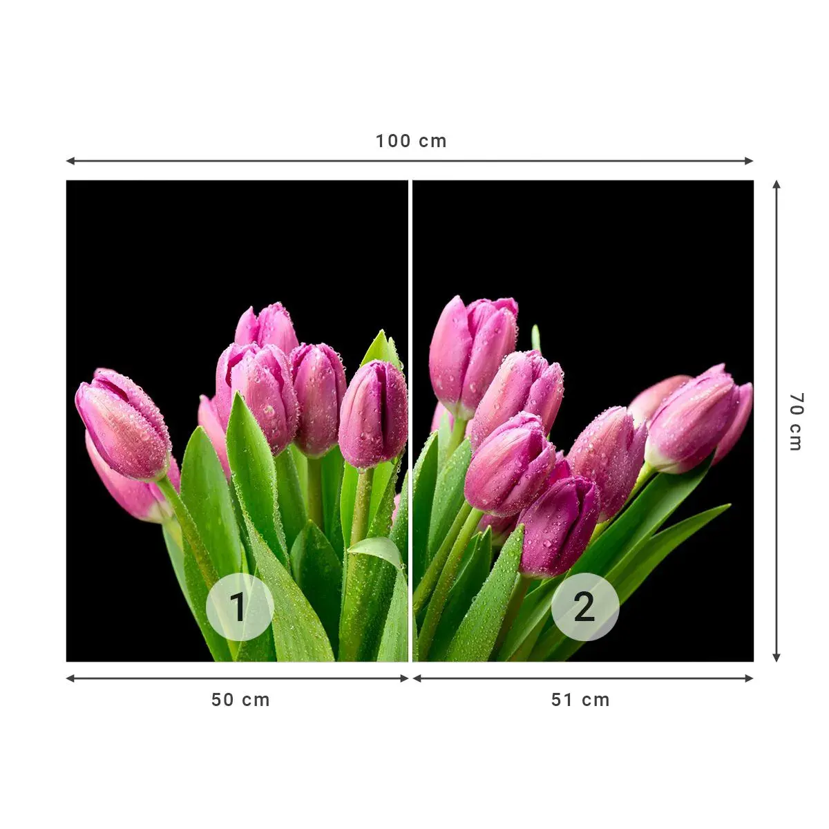 Zelfklevend Fotobehang Deluxe Sticker - Lila vreugde van de lente - Bloemen, Tulpen, Boeket bloemen - 100x70 cm