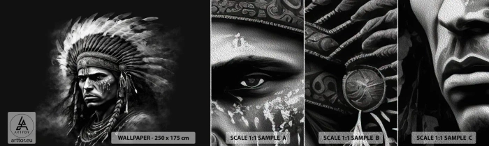 Fotobehang Monster Premium Sand - Een leider en strijder - Indisch, Stammen, Etnisch - 100x30 cm
