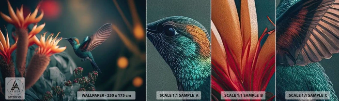 Fotobehang Monster Premium Sand - een werkelijk kleurrijk leven - Vogel, Exotisch, Bloem - 100x30 cm