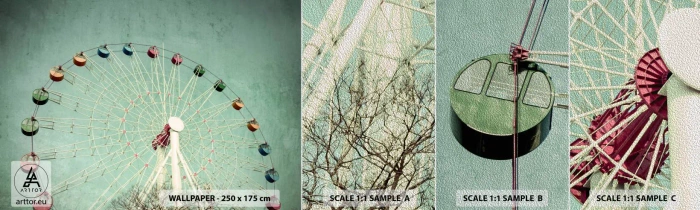 Fotobehang Monster Premium Sand - Wij nodigen u uit om plezier te hebben - reuzenrad, Draaimolen, Vintage - 100x30 cm