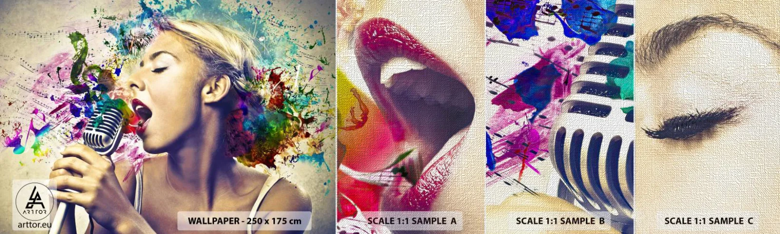 Fotobehang Monster Premium Canvas - Schilder de wereld met je stem - Vrouw, Muziek, 3D - 100x30 cm