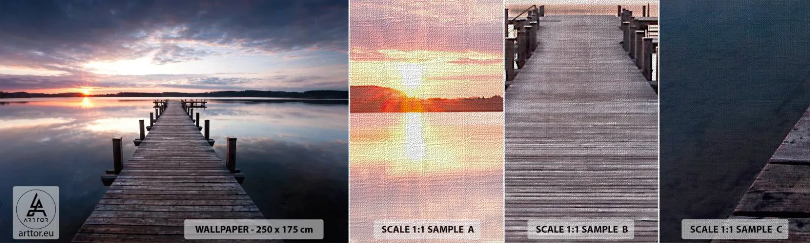 Voordat u een fotobehang op ware grootte kiest PREMIUM CANVAS , raden wij u aan een materiaalmonster te bestellen in de volgende afmetingen: 100x30cm Dankzij het voorbeeld kunt u de kwaliteit van het materiaal live controleren, de kleurweergave bekijken, de oppervlaktestructuur voelen en de dikte van het materiaal beoordelen, wat u zal helpen een weloverwogen beslissing te nemen over het kiezen van het beste fotobehang voor uw interieur.