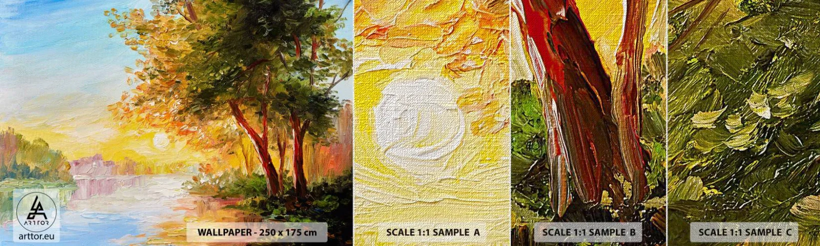 Voordat u een fotobehang op ware grootte kiest PREMIUM CANVAS , raden wij u aan een materiaalmonster te bestellen in de volgende afmetingen: 100x30cm Dankzij het voorbeeld kunt u de kwaliteit van het materiaal live controleren, de kleurweergave bekijken, de oppervlaktestructuur voelen en de dikte van het materiaal beoordelen, wat u zal helpen een weloverwogen beslissing te nemen over het kiezen van het beste fotobehang voor uw interieur.