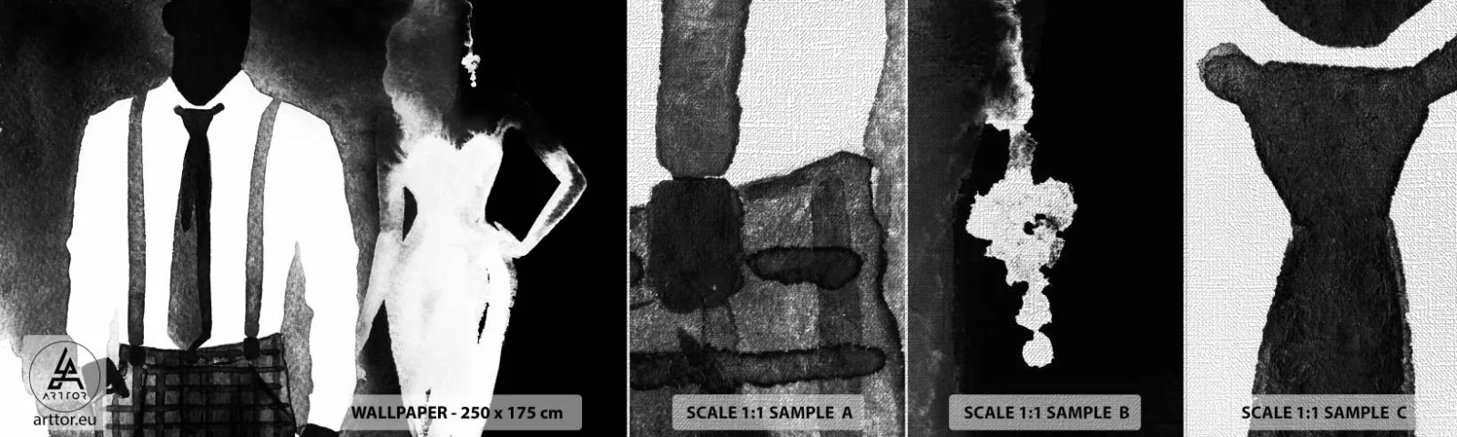 Fotobehang Monster Premium Canvas - In een noir sfeer - Abstractie, Vrouw en man, Mode - 100x30 cm