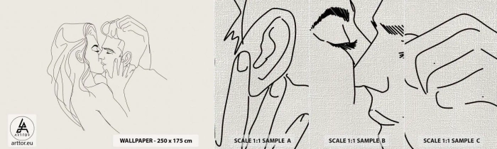 Fotobehang Monster Premium Canvas - Verstrikt in gevoel - Grafisch, Verliefd stel, Kus - 100x30 cm