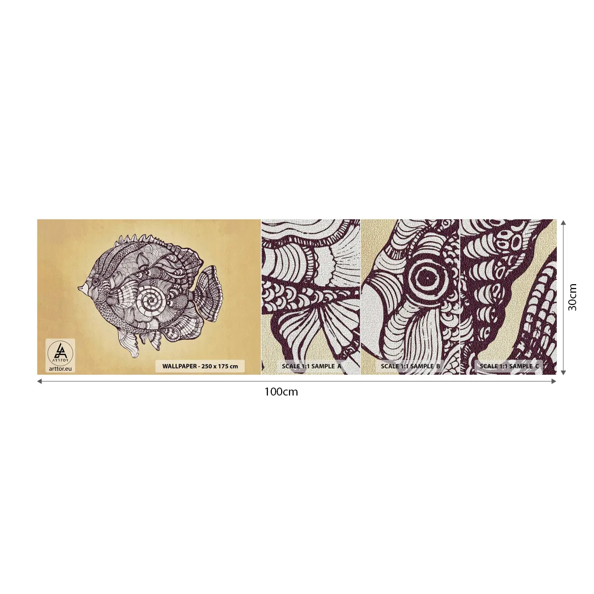 Fotobehang Monster Premium Canvas - Uit een oceaan van ornamenten - Vis, Ornament, Decoratie - 100x30 cm